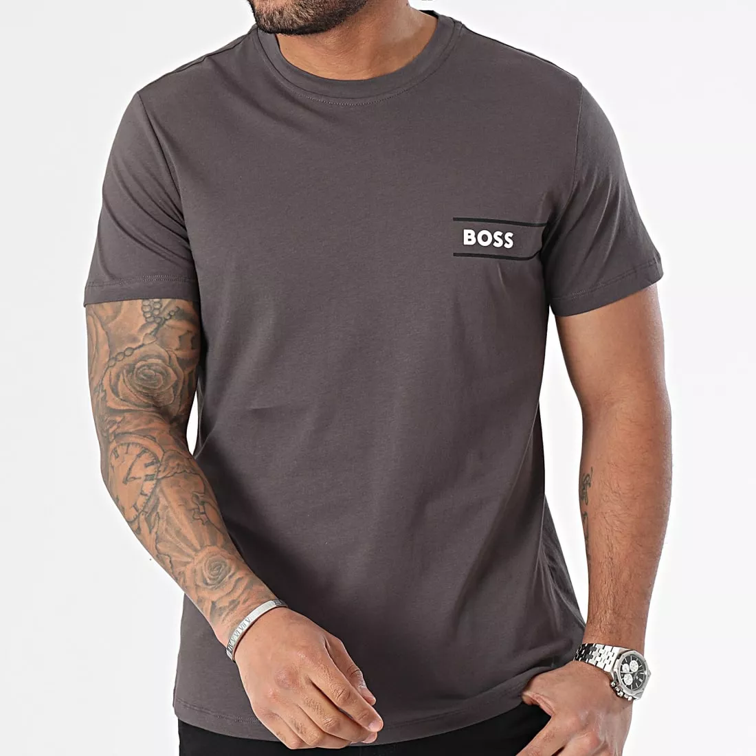 >ul>>li>50508744 – Hugo boss.>/li>>li>Shades: the GRAY. >/li>>li>Fit: regular. >/li>>li>Neck: round. >/li>>li>sleeves: short. >/li>>li>Logo: printé. >/li>>li>Washing: Washing machine. >/li>>li>Advice: take your usual size. >/li>>li>Material: 100% Cotton. >/li>>/ul>